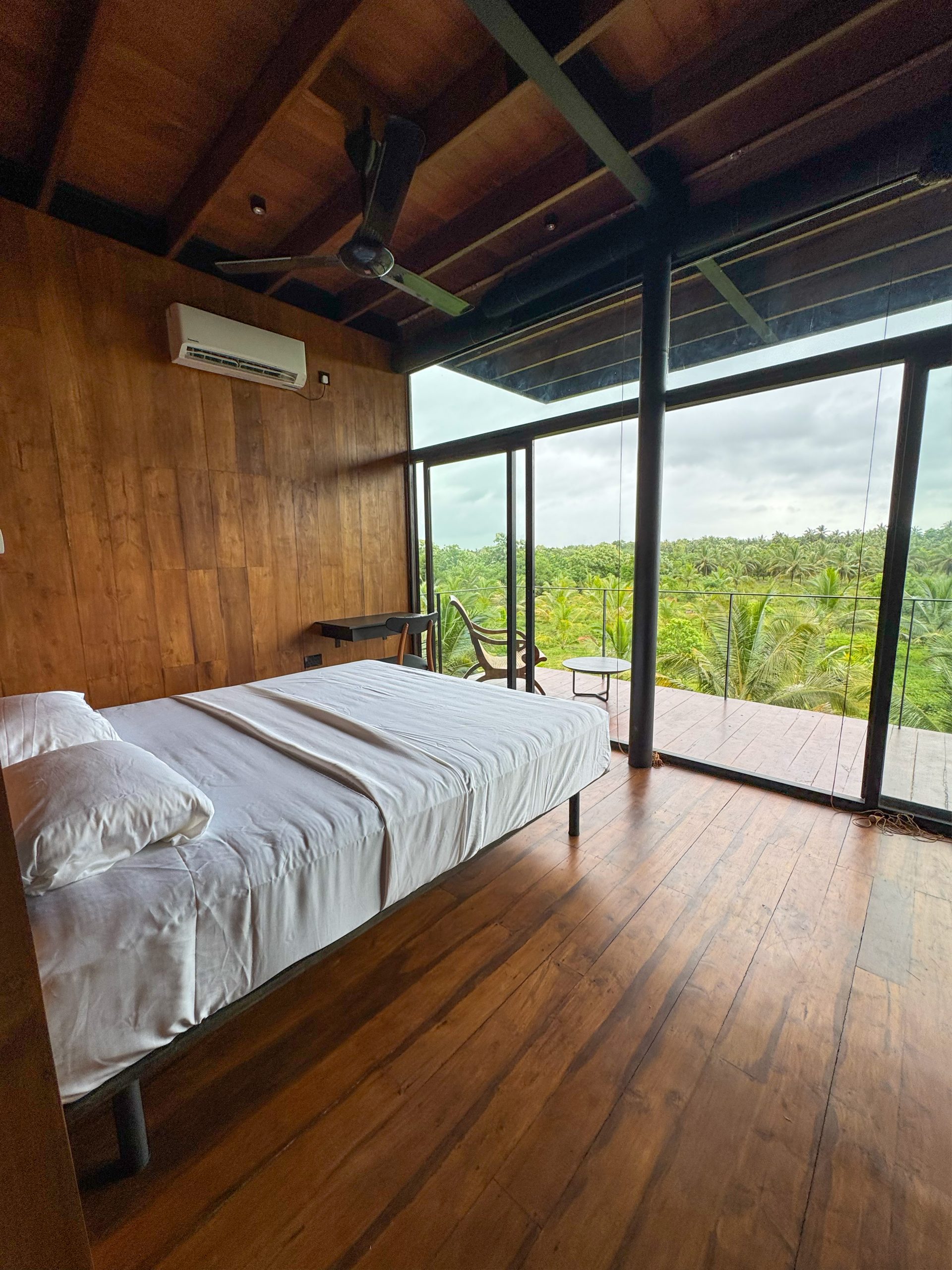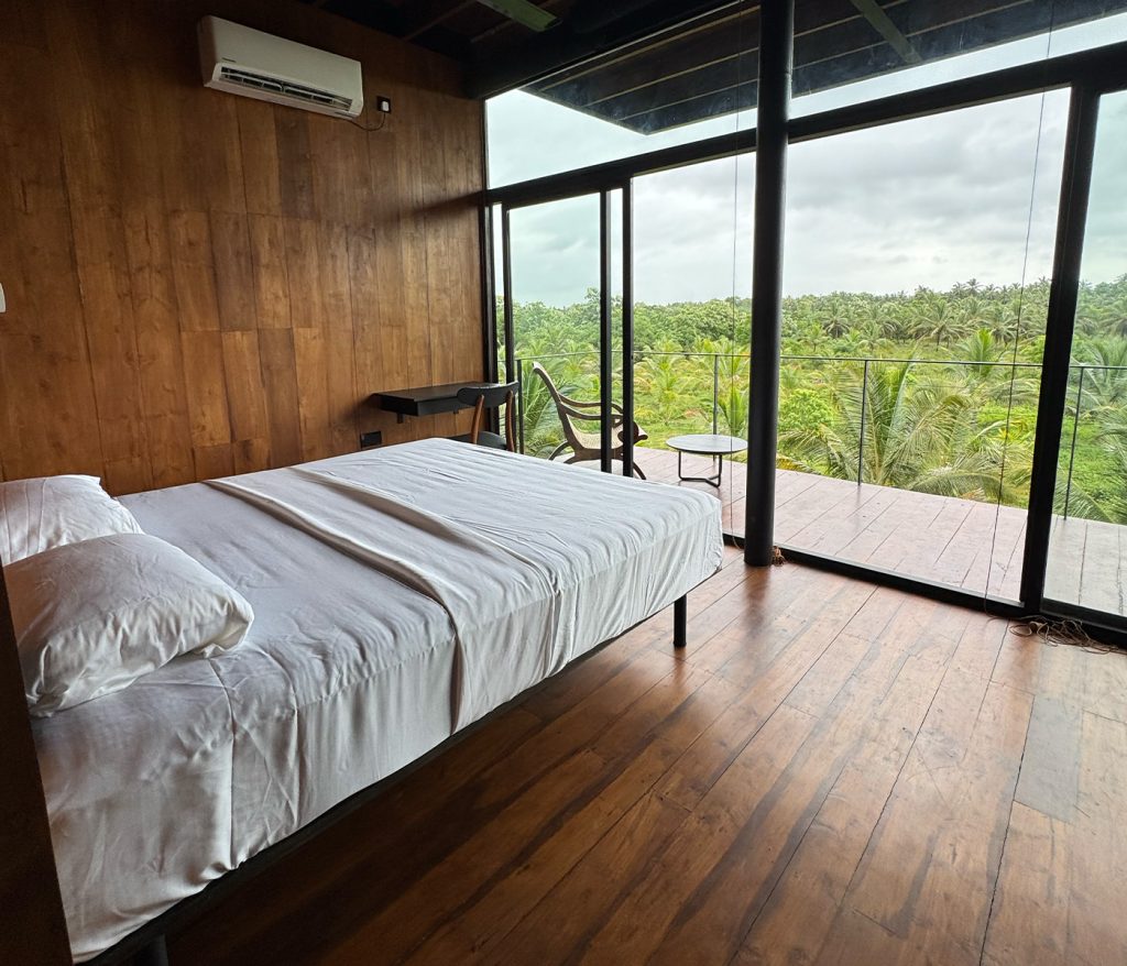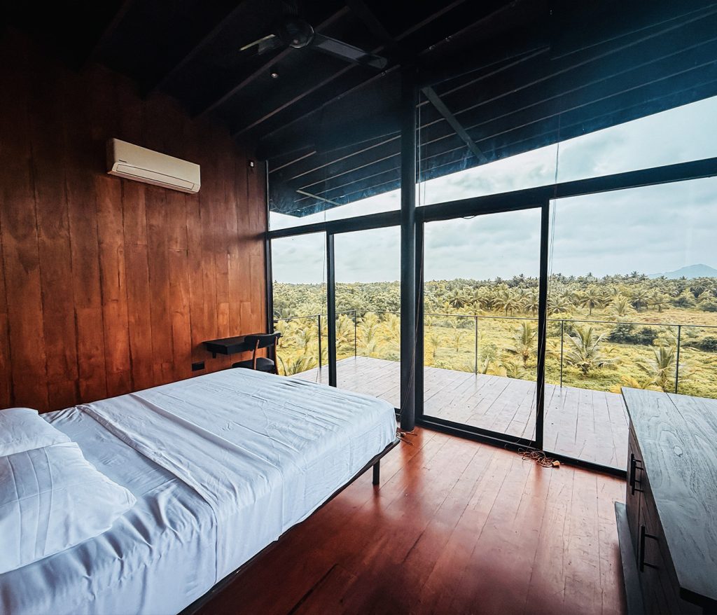 The deluxe rooms in the tower at Dusk Roots elevate your stay with spacious comfort and spectacular views. Each room is thoughtfully designed to blend relaxation with understated luxury, featuring large windows that showcase Anuradhapura’s lush paddy fields, winding rivers, and tranquil landscapes. Enjoy privacy, peace, and a calming ambiance high above the villa grounds. Whether you’re unwinding with sunset colors filling the sky or waking to the gentle sounds of nature, our tower’s deluxe rooms promise an unforgettable experience surrounded by the beauty of Anuradhapura.